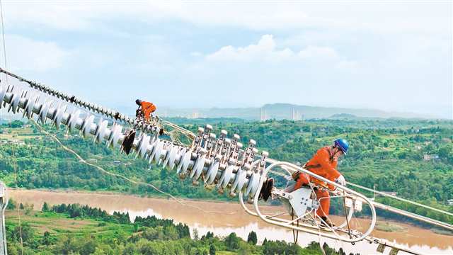 “疆电入渝”特高压配套工程完成跨江段放线“疆电入渝”特高压配套工程完成跨江段放线9月26日,合川区嘉陵江畔,哈密-重庆特高压直流受端500千伏配套工程(二期)渝岳线跨江段,施工人员正在开展间隔棒安装工作。“疆电入渝”工程2026年完工...