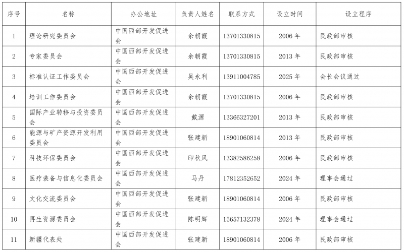 中国西部开发促进会机构一览表