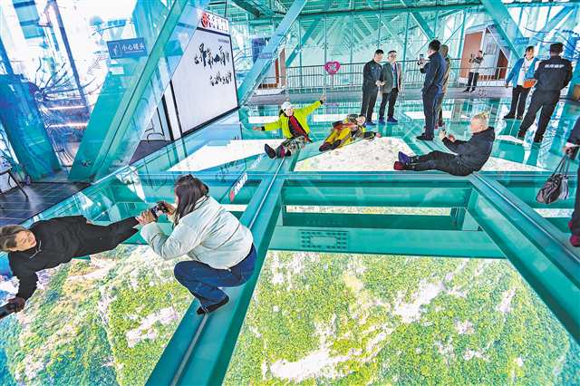 10月23日,众多游客在花江峡谷大桥的观光通道体验打卡。 记者 郑宇 摄/视觉重庆 今年9月28日通车的贵州花江峡谷大桥,凭借625米的垂直高度和1420米的主跨度,成为新的“世界第一高桥”。 作为一项世界级工程,花江峡谷大桥凝聚了无数建设者的智慧与汗水,其中就有