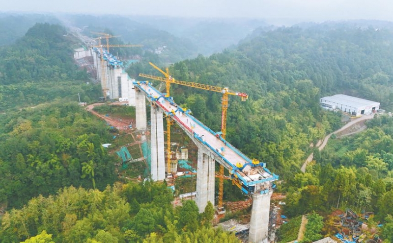 11月4日,成渝中线高铁重庆段的全线控制性工程——一碗水双线特大桥连续梁顺利合龙。(受访单位供图) 11月4日,随着最后一方混凝土浇筑完成,成渝中线高铁重庆段的全线控制性工程——一碗水双线特大桥连续梁顺利合龙,为全线通车奠定坚实基础。 一