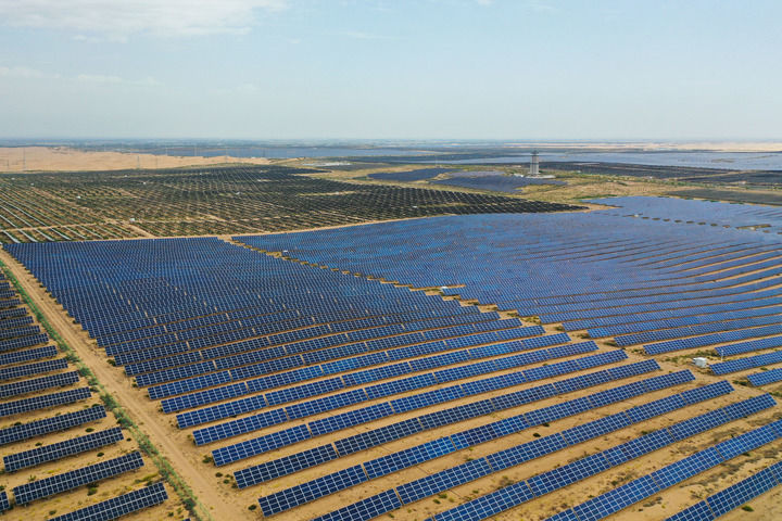 沙漠深处,一排排光伏板组成浩瀚的蓝色“海洋”;广袤草原上,一台台巨大风机巍然耸立……在内蒙古,记者一次次被壮观的场景所震撼。