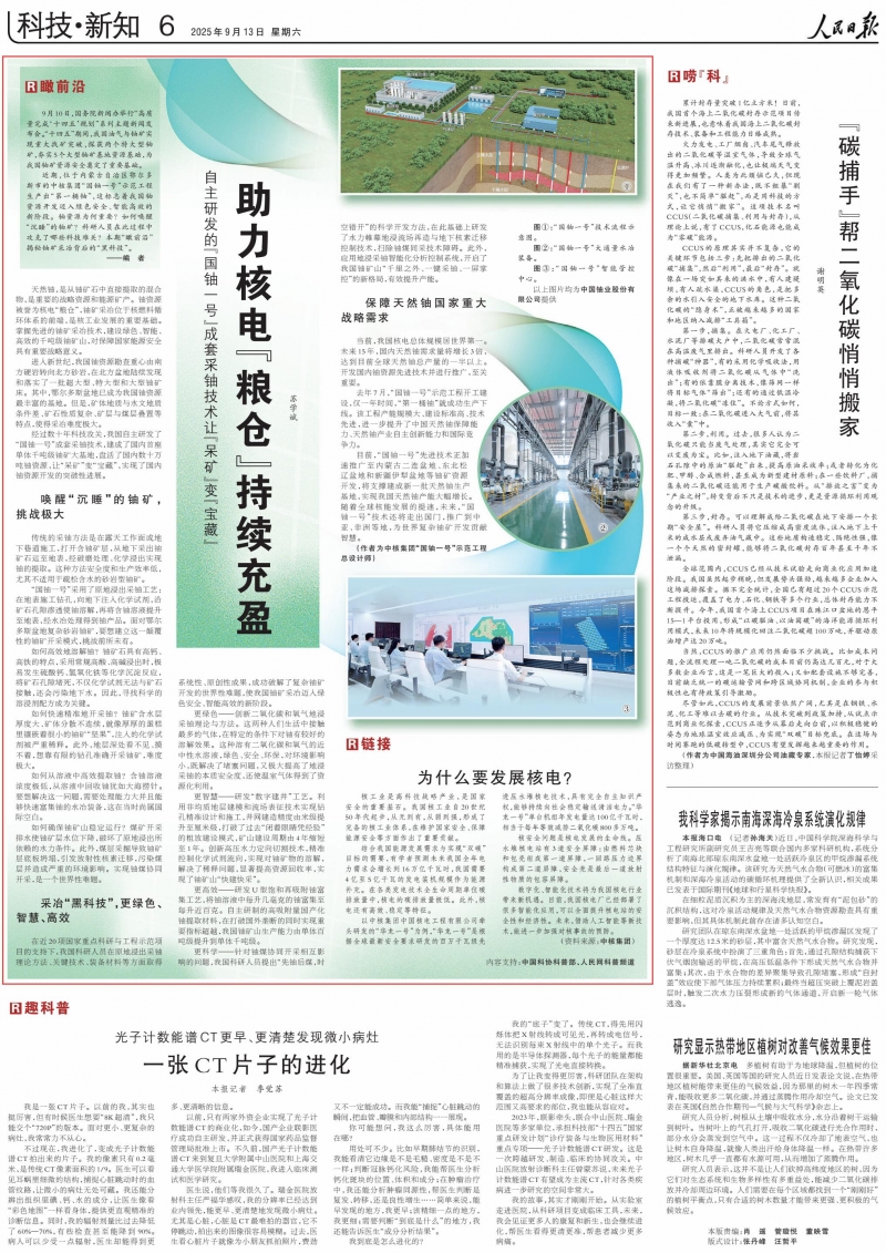 2025年9月13日《人民日报》第6版 “国铀一号”技术流程示意图。 “国铀一号”大通量水冶装备。 “国铀一号”智能管控中心。 9月10日,国务院新闻办举行“高质量完成‘十四五’规划”系列主题新闻发布会。&